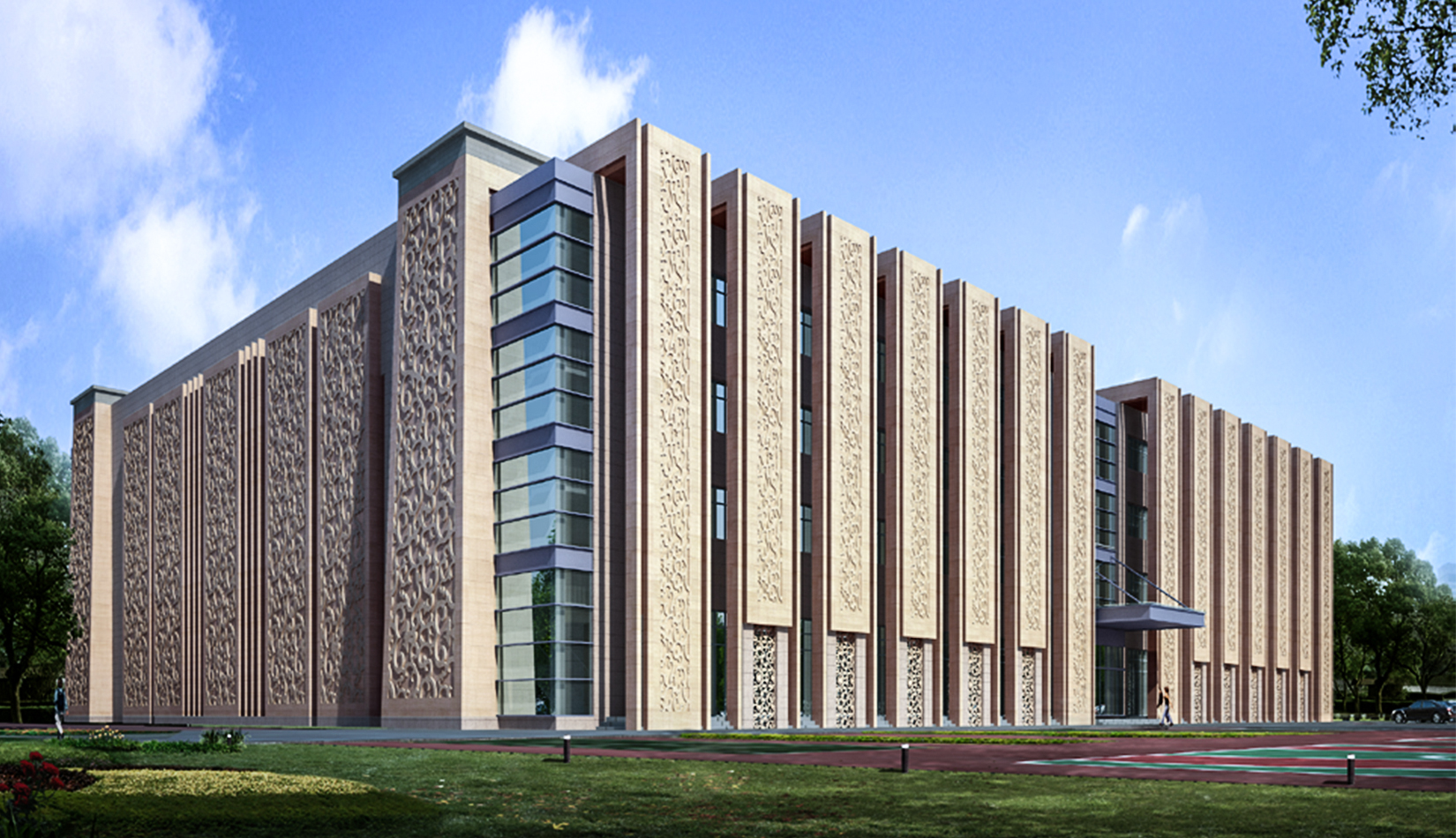 民俗造型、契丹浮雕、當(dāng)?shù)厥模O(shè)計(jì)源于當(dāng)?shù)匚幕?,歸于時(shí)代潮流,簡(jiǎn)潔的造型,龐大的體量使其成為莫旗的城市標(biāo)志性建筑。