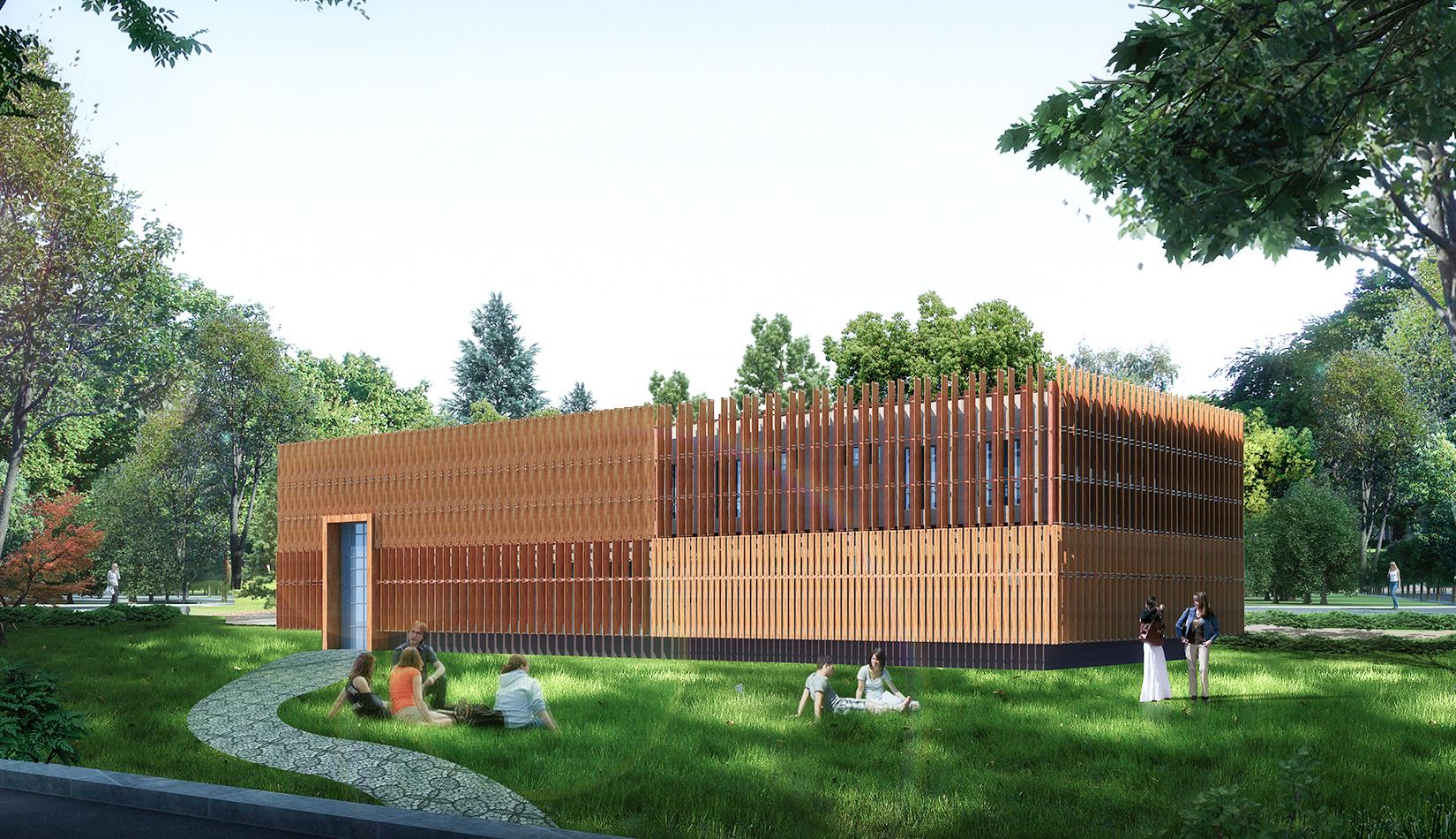東區(qū)生活區(qū)庭院空間配合建筑設(shè)計(jì)的現(xiàn)代主義風(fēng)格,提取未來(lái)主義畫(huà)派的代表元素——線條 作為構(gòu)思的主脈絡(luò),以“理性與未來(lái)”為設(shè)計(jì)理念,在建筑圍合的景觀中庭采用現(xiàn)代景觀設(shè)計(jì),意在未來(lái),情致校園 。