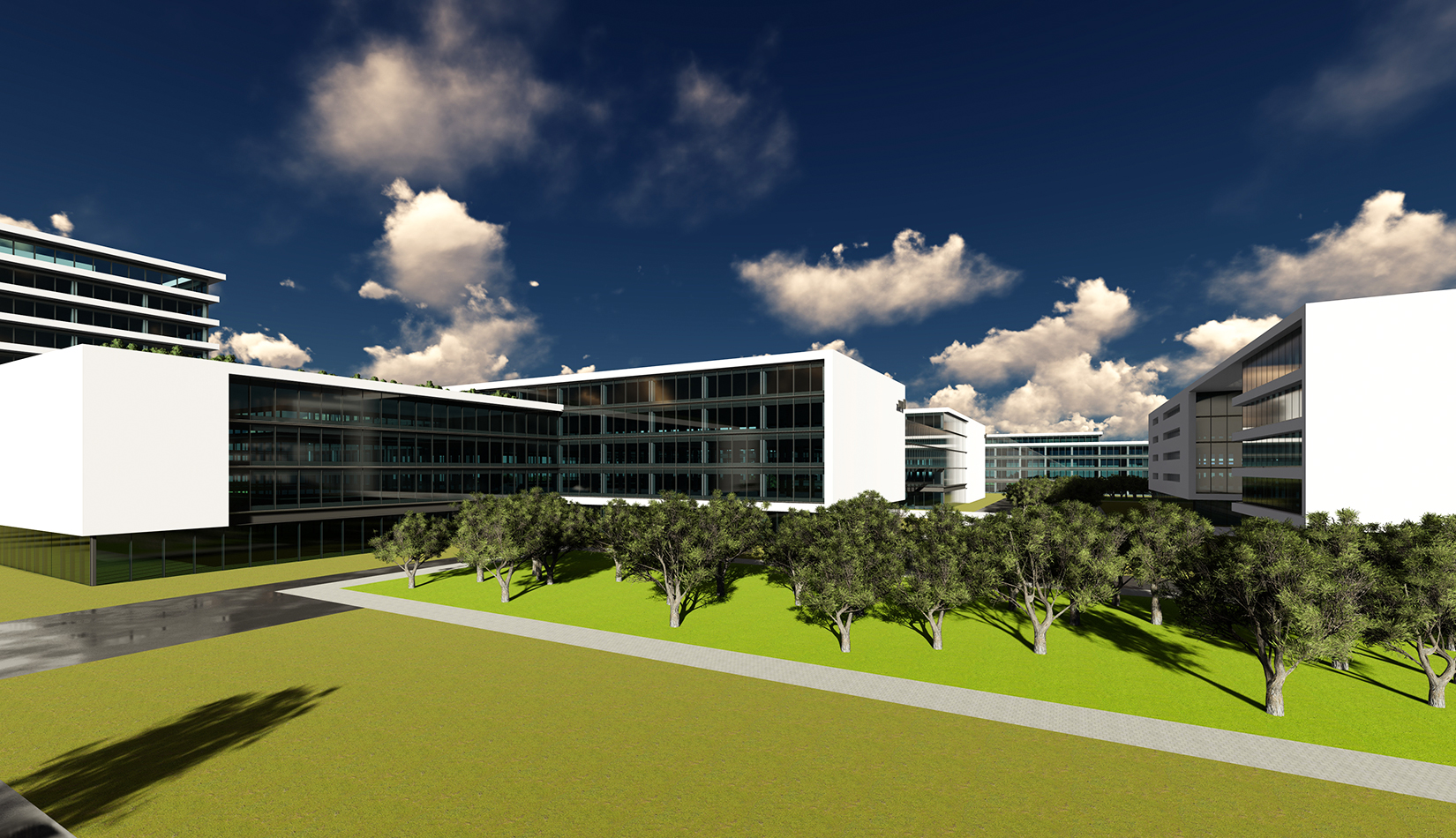 用全圍合式布局,形成兩個(gè)能量環(huán),為整個(gè)園區(qū)輸送無(wú)限動(dòng)力。活力三環(huán)的自由、靈活的建筑布局形式,為多元化的企業(yè)辦公提供各種空間選擇?;盍θh(huán)均與雙核中心相連,在吸取核心研發(fā)產(chǎn)業(yè)鏈能力同時(shí),不斷提升自己,向雙核中心注入新活力。通過(guò)五環(huán)的建筑空間形式,將多元功能塊組合在一起,形成一個(gè)共生循環(huán)系統(tǒng)。