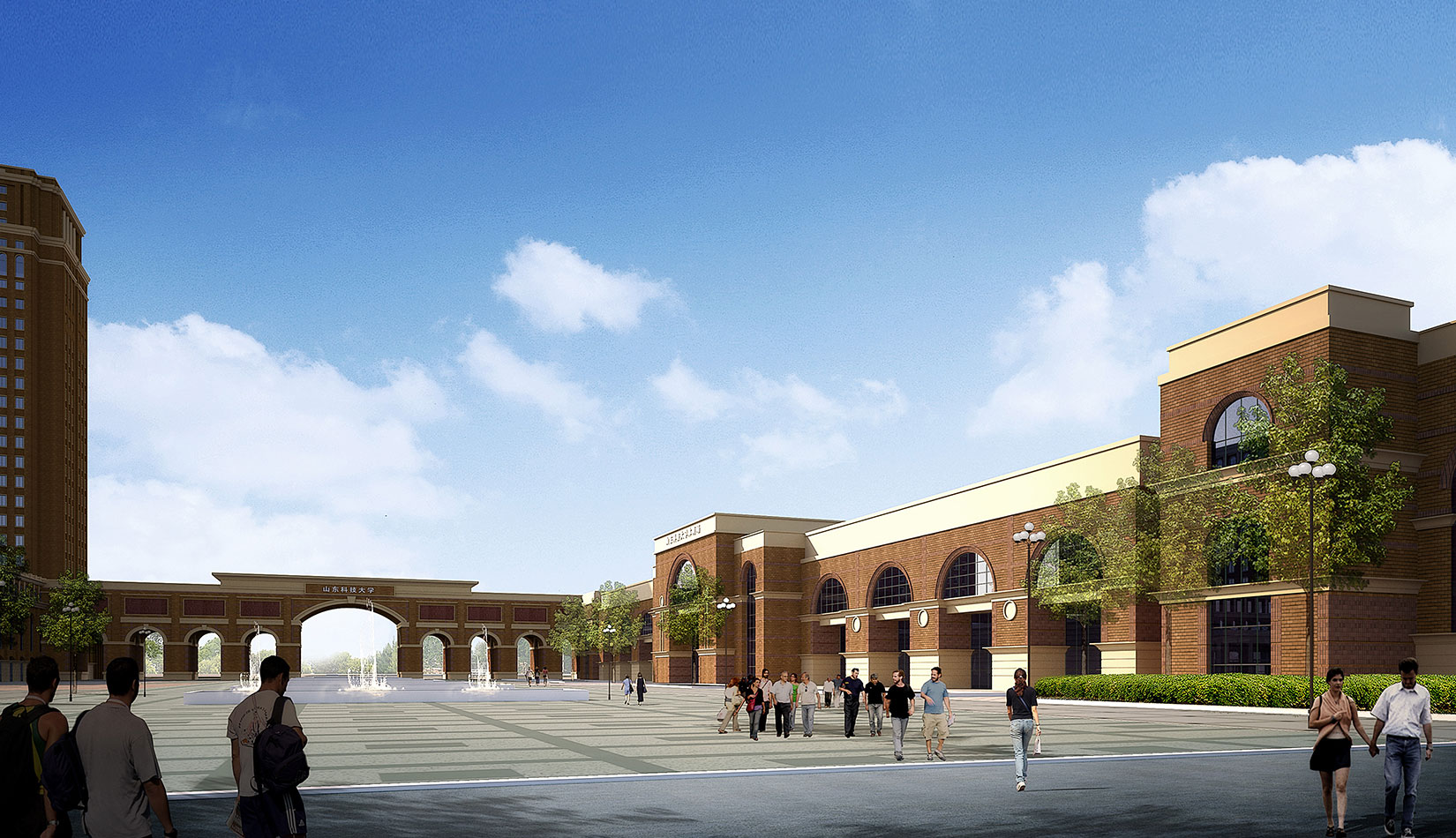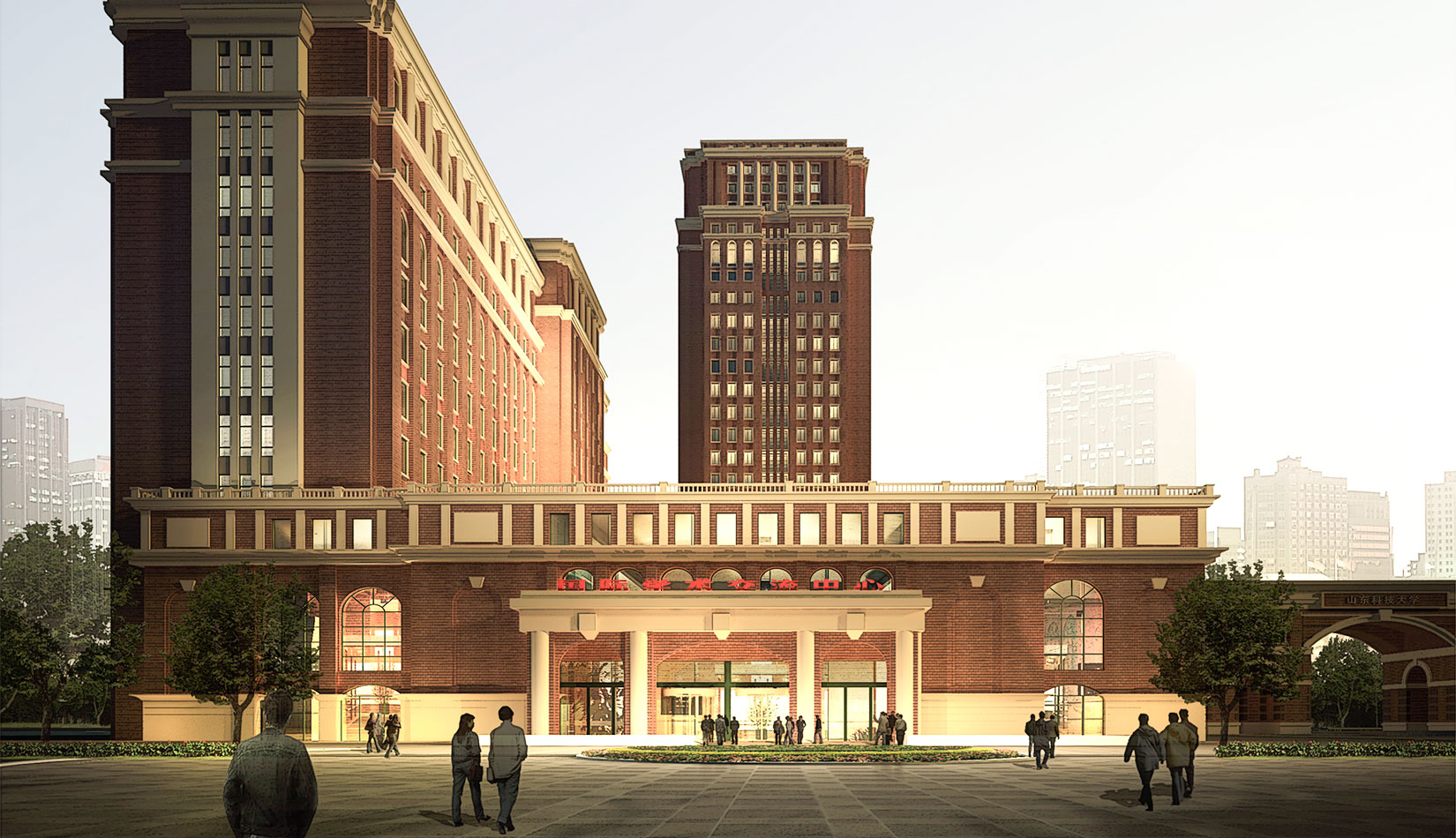 西寬420 米,南北深420 米,沿海爾大道長(zhǎng)度為370 米??傆玫丶s260 畝。根據(jù)校園總體規(guī)劃,該地塊建設(shè)體育場(chǎng)、音體館、國(guó)際學(xué)術(shù)交流中心及東大門。規(guī)劃總建筑面積約9 萬(wàn)平方米。