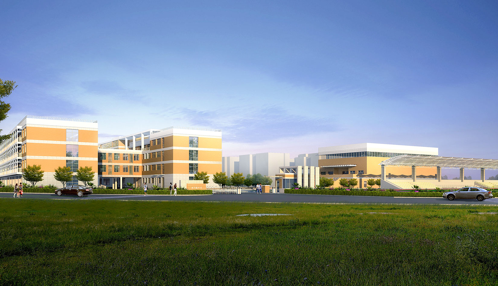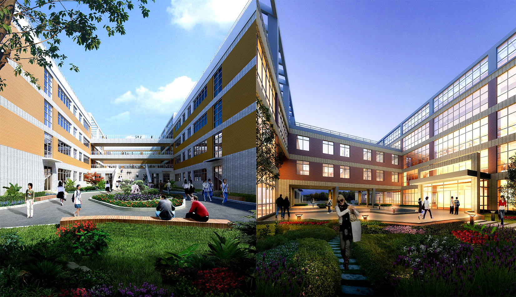 通過對功能、流線的科學(xué)整合與單體建筑的精心設(shè)計,運用現(xiàn)代的建筑語言營造富有強烈時代感的校園環(huán)境,并不斷探索開放、和諧、人文的校園設(shè)計策略,使建筑體現(xiàn)時代特征。