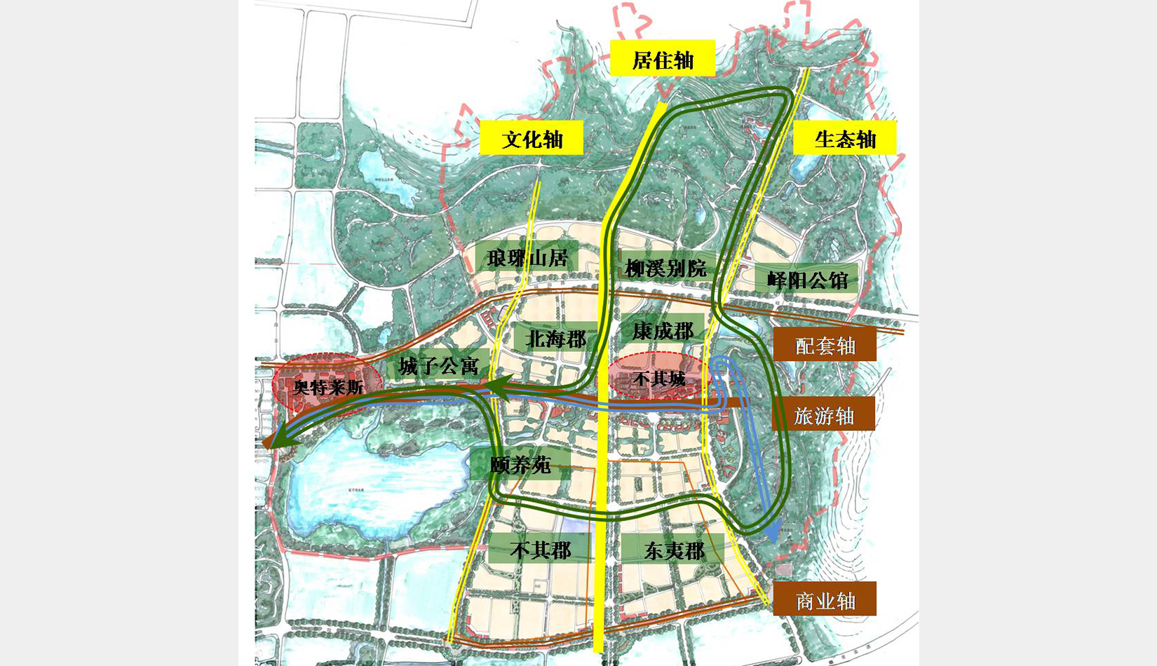 同時(shí)土地開發(fā)過程中,在注重不其文化旅游資源的整合與產(chǎn)業(yè)培育的基礎(chǔ)上,適當(dāng)發(fā)展樓宇經(jīng)濟(jì),開發(fā)住宅項(xiàng)目,打造未來生態(tài)宜居的理想生活城。